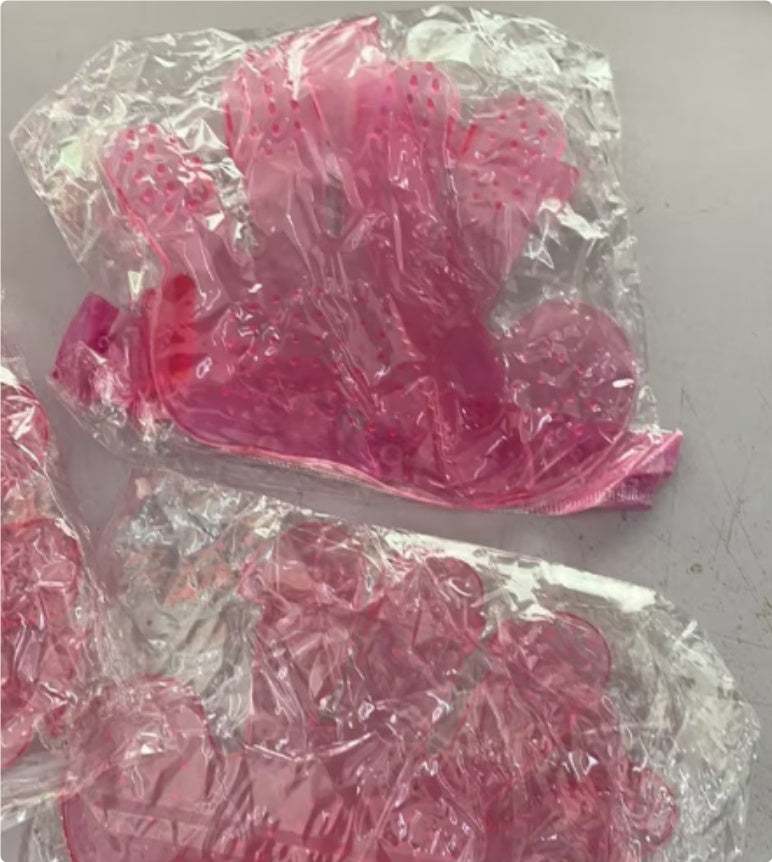 Made of soft rubber, use for the bath. It can massage the pets, your pet will enjoy the bath/shower.